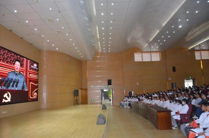 7月1日上午7:30,beat365vip官网登录入口全体党员、教职工、学生代表共计385人怀着无比激动的心情,早早来到学院瞻远楼第二报告厅,集体等候收听收看党中央庆祝中国共产党成立100周年大会实况。8:00大会开始,师生手持五星红旗,全体起立,高声奏唱国歌,认真聆听习近平总书记发表的重要讲话。