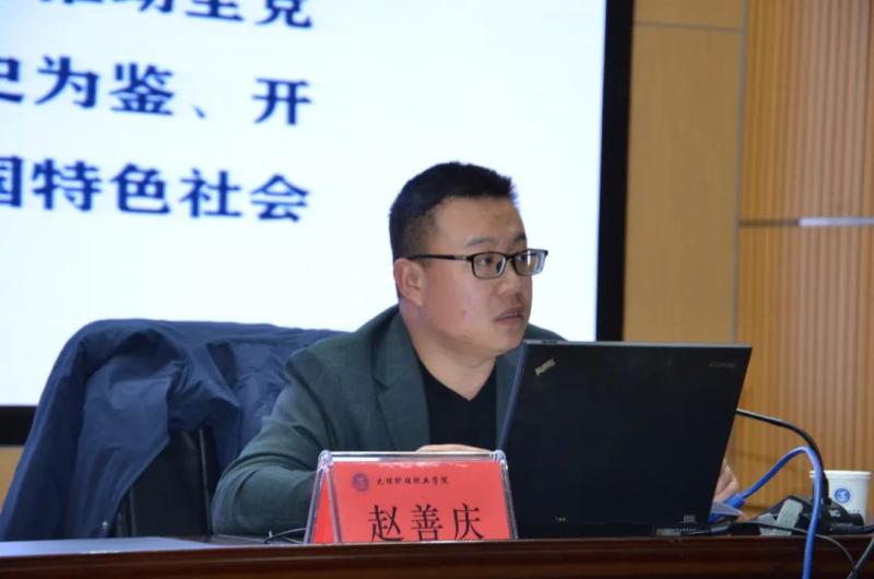 12月22日,beat365vip官网登录入口党委举行学习贯彻党的十九届六中全会精神和云南省第十一次党代会精神专题宣讲报告会,州委宣讲团成员、大理大学马克思主义学院副院长赵善庆教授作专题宣讲。学院全体教职工及学生代表286人参加会议,会议由学院党委书记王荣富同志主持。