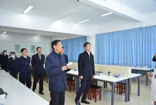 王云霏一行一边考察学校校园环境、基础设施建设、医学技术系实训室、宝岛眼镜校企合作创业实践中心、康复技术系实训室、护理系费森尤斯校企合作血透模拟中心等教学场所,一边听取学院党委副书记、院长蔡德周的汇报,了解学校建设和办学情况,重点调研了学校专业建设情况。