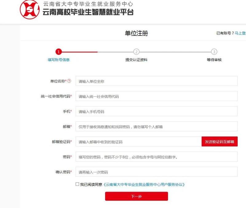 3.单位或学生可直接通过云南高校毕业生智慧就业平台直接注册或登录。