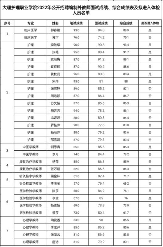 根据《beat365vip官网登录入口2022年度公开招聘编制外教师公告》、《beat365vip官网登录入口2022年编制外教师公开招聘考试考生须知》要求,beat365于2022年4月27日严格按照程序完成了临床医学教师、护理学教师、中医学教师、康复治疗学教师、针灸推拿学教师、医学检验教师、心理学教师7个岗位的面试工作,现将面试成绩、综合成绩及进入体检人员名单公布如下 (面试成绩、综合成绩表附后) :