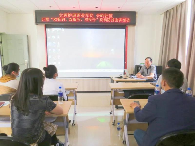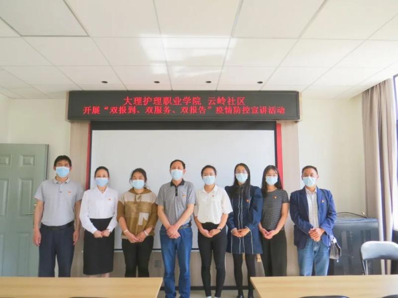 为切实贯彻好中央组织部《关于深化城市基层党建引领基层治理的若干准则(实行)》和省州党委推进作风革命、效能革命的有关部署,引导学校党组织和在职党员“工作在单位、活动在社区、奉献双岗位”,建立“我为群众办实事”实践活动长效机制,与社区共同筑牢疫情防控网,进一步加强新冠疫情防控知识教育,4月27日学校党委专职副书记字利鹏带领学院党委组织部、护理系党支部到云岭社区开展“双报到双服务双报告”疫情防控宣讲活动。