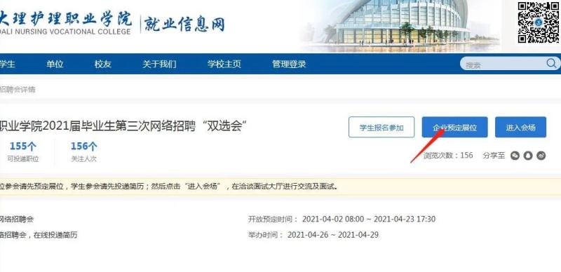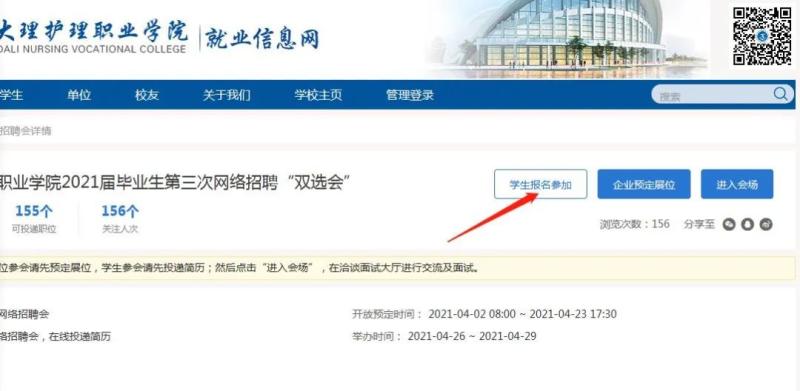 学生点击网址http://dlhlzyxy.jysd.com/进入界面后先注册再登录完成相应信息填写后登录并完成简历后参加线上招聘。