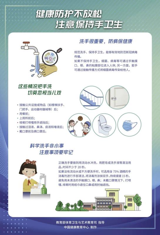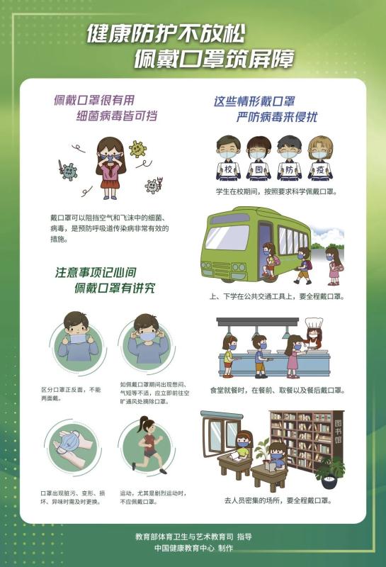 近日,教育部委托中国健康教育中心开发制作了《校园新冠肺炎疫情防控健康科普系列挂图》。在校期间应如何做好个人健康防护?戴口罩、保持手卫生等要注意些什么?跟教育小微一起学起来——