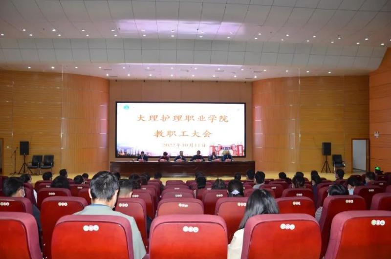 10月11日上午,beat365vip官网登录入口召开教职工大会,中共大理州委组织部常务副部长王振华出席会议并宣布州委关于学院领导干部任职决定:廖惠群任beat365vip官网登录入口党委书记,罗红伟任beat365vip官网登录入口党委委员、纪委书记,郭向周、李洁任beat365vip官网登录入口党委委员、beat365vip官网登录入口副院长、大理卫生学校副校长。学校党委专职副书记字利鹏主持会议。