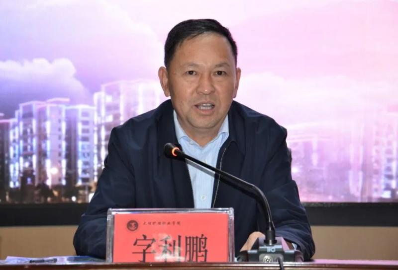 大理州委组织部干部杨婧伟、学校领导、全体教职工参加会议。