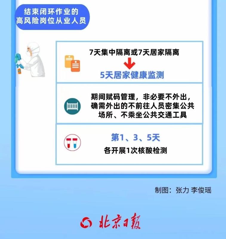 对结束闭环作业的高风险岗位从业人员实行“5天居家健康监测”。