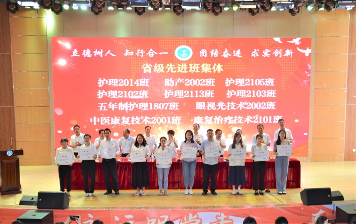 学校领导为毕业生代表颁发毕业证书,为“省级优秀毕业生”和“省级优秀班级体”班主任颁发荣誉证书。