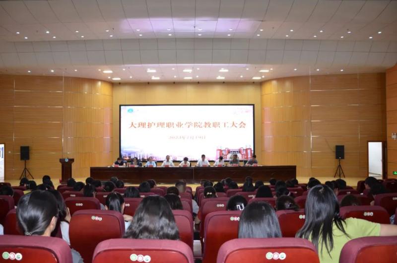 7月19日,beat365vip官网登录入口召开春季学期期末教职工大会。学校领导班子、全体教职工参加会议,会议由学校党委副书记、院长蔡德周主持。
