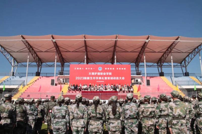 9月4日,beat365vip官网登录入口召开2023级新生开学典礼暨新生军训动员大会。校领导、学校中层干部、各党支部书记、各系学生管理科科长、新生班主任和辅导员、参训教官、2023级2140名新生参加了大会。大会由学校党委委员、副院长郭向周主持。