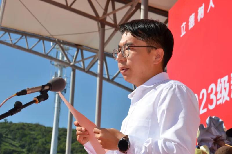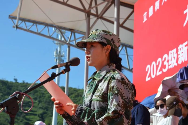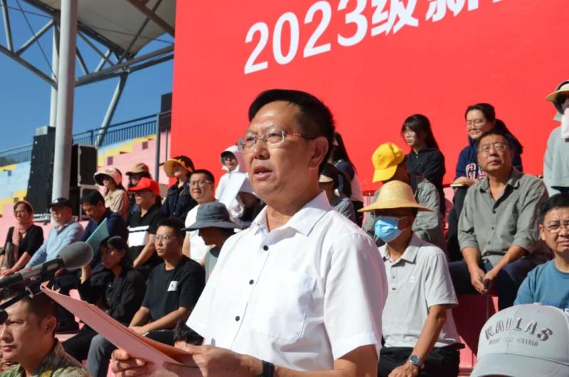 学校党委副书记、院长蔡德周作动员讲话。他代表学校向全体教官致以崇高的敬意,对2023级新同学的到来表示热烈欢迎。他对全体新同学提出了三点要求,一是树立远大理想,报效祖国,胸怀天下;二是珍惜大学时光,认真学习、锻炼本领;三是转变人生角色,修身笃行、格局宽广。希望同学们立大志、明大德、成大才、担大任,勤而行之、日有所进,在青春的赛道上跑出当代青年的加速度。
