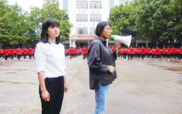 周云丽在课间操期间协助张桂梅校长(2021年8月26日摄)。新华每日电讯记者 周磊 摄