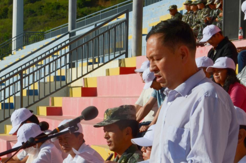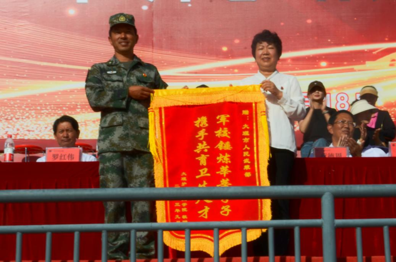 校党委书记廖惠群同志为大理市人民武装部领导赠送锦旗。