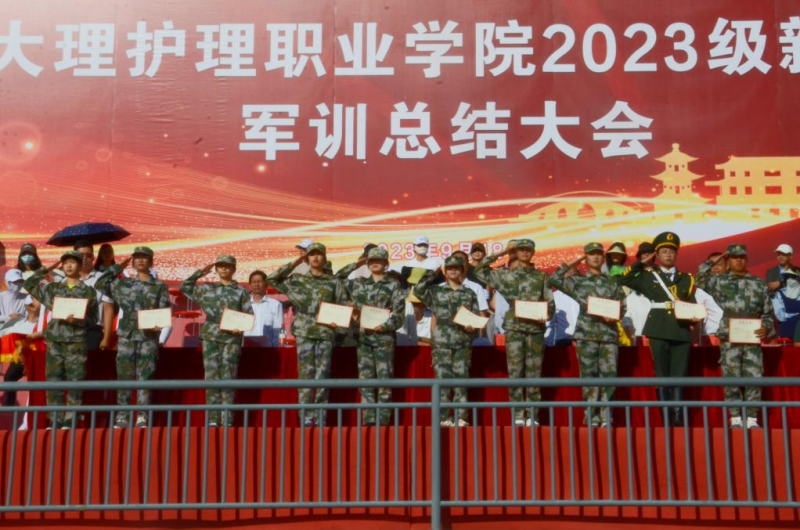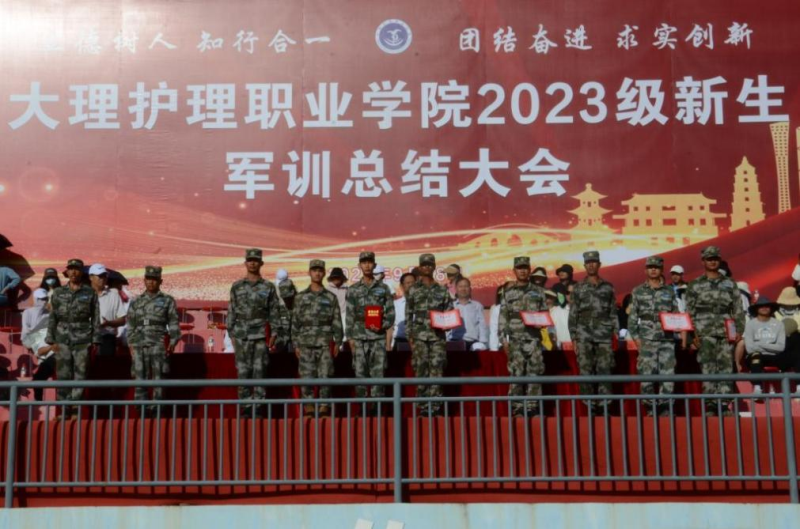 校党委专职副书记字利鹏宣布优秀教官的表彰决定;校党委委员、副院长石龙富宣布军训学生优秀学员的表彰决定。主席台就坐的领导为优秀教官代表、优秀学员代表颁奖。