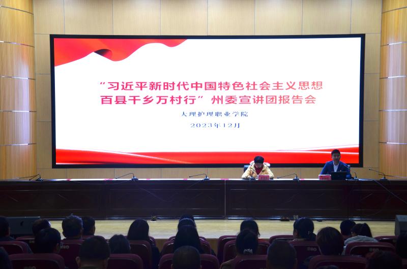 12月13日,大理州委宣讲团成员崔恩铭老师,深入beat365vip官网登录入口开展“习近平新时代中国特色社会主义思想百县千乡万村行”宣讲报告会。学校党委书记廖惠群主持宣讲报告会。