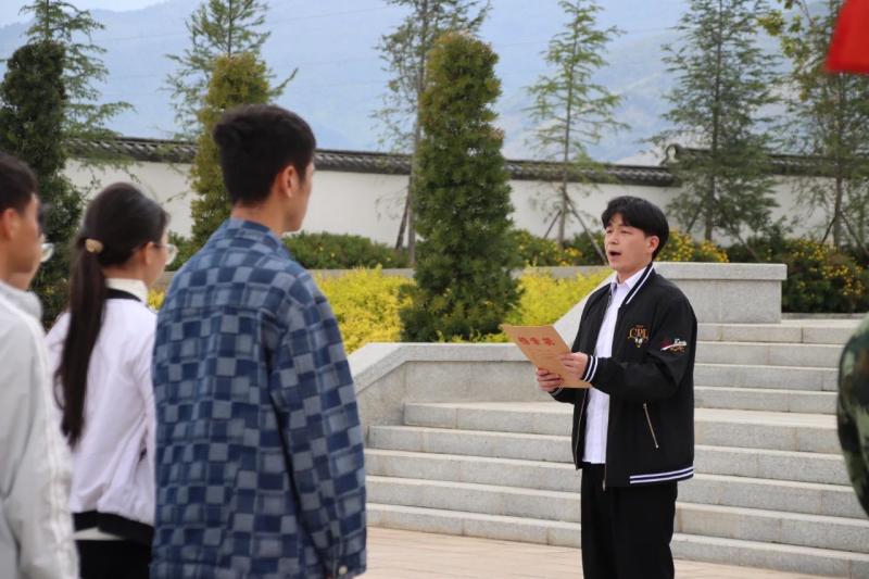 刘期银同学在纪念碑前代表全体青年师生郑重宣誓,作为新时代接班人,将高举中国特色社会主义伟大旗帜,弘扬伟大建党精神,传承伟大的先烈精神!