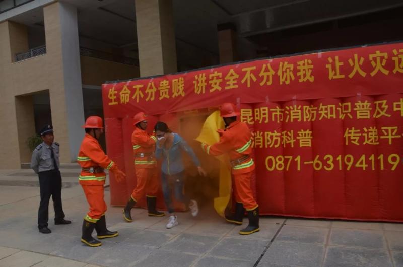 精彩的讲座结束后,刘教官带领培训人员亲身体验火灾现场和实践操练消防器材,大家热情高涨,体验的队伍排起了长龙。体验者按秩序进入模拟封闭“火灾现场”,并用浸湿的毛巾捂住口鼻,里面一片漆黑、刺鼻的烟雾,演练者乱撞,经过几次摸索,才找到正确的通道。火灾模拟逃生,体验者感受到了真实的火灾场景,深刻体会到火灾来临时一定要镇定、不能慌乱,并按照教官所传授的逃生知识,迅速寻找逃生通道。