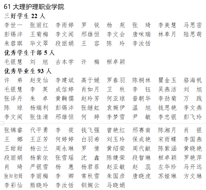 按照《中共云南省委教育工委 云南省教育厅关于开展2023—2024学年省级三好学生 优秀学生干部 先进班集体及2024届优秀毕业生推选工作的通知》精神,经各单位逐级评选、公示、推荐,并经省委教育工委、省教育厅审定及公示,共评选出云南省2023-2024学年高校省级三好学生5074名、优秀学生干部1282名、先进班集体2349个、2024届省级优秀毕业生23004名(具体名单见附件),现予以公布。