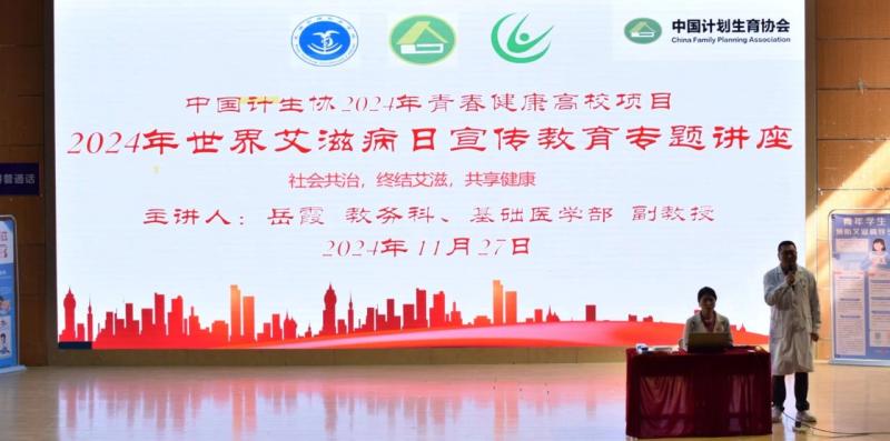 11月27日,在第37个“世界艾滋病日”到来之际,为全面提升学生的禁毒防艾意识。学校护理系党支部、基础医学部党支部、教务科、科研部、妇联和校红十字会联合开展2024年世界艾滋病日宣传教育专题讲座。本次活动共500余名师生参与。活动由护理系团委、青春健康同伴社承办。大理州红十字会领导和校领导莅临讲座现场指导。