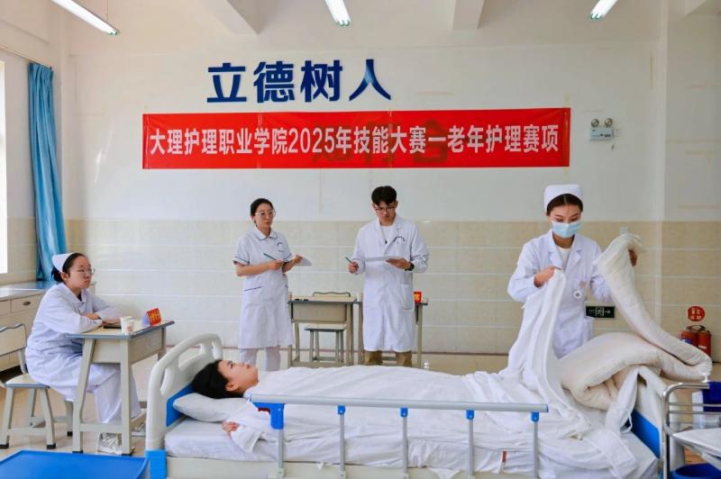 老年护理赛道共有42名选手参赛。随着人口老龄化加剧,老年护理需求日益增长,该赛道的意义尤为重大。选手们针对老年人常见疾病和护理难题,如卧床病人更换床单、轮椅运送病人等进行操作展示。他们以耐心、细心和爱心,为老年人提供专业且贴心的护理服务,体现了对老年群体的关怀与尊重。