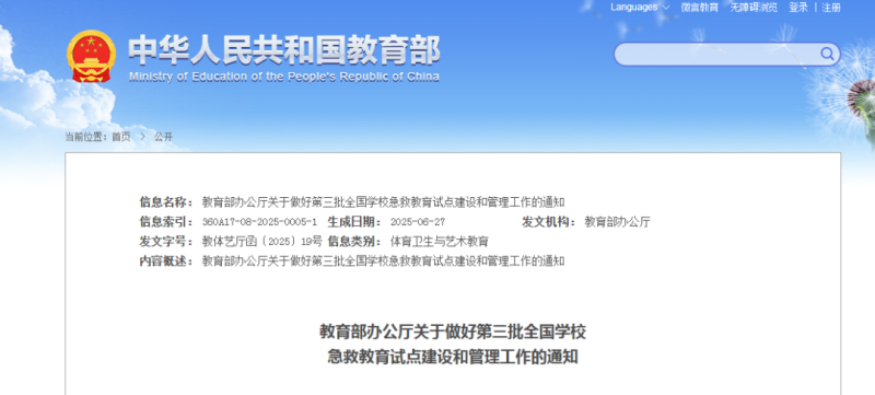 《关于做好第三批全国学校急救教育试点建设