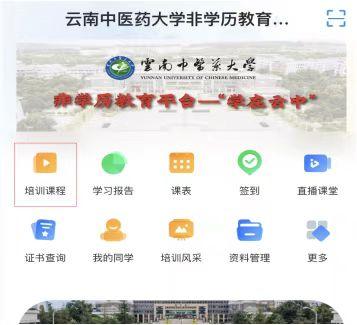 (一)选择“线上”学习的学员,将通过云南中医药大学非学历教育平台—“学在云中”进行学习;
