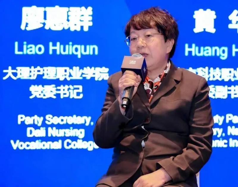 在“匠谷圆桌对话”环节,廖惠群书记作为发言嘉宾,与来自联合国教科文组织、国内外知名院校及跨国企业的代表们展开了深入交流。她围绕“国际化办学与产教融合”核心议题,结合beat365vip官网登录入口办学特色与实践经验,分享了学校在深化产教融合、推进“职教出海”和培养国际化护理人才等方面的探索与思考。她强调,职业教育的高质量发展必须紧密对接产业需求,通过“引进来”与“走出去”相结合的双轨策略,既要借鉴国际先进理念,也要积极输出中国标准与模式,服务“一带一路”共建国家的产业经济发展。