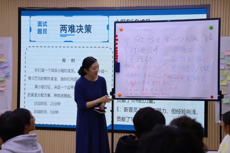 12月3日至4日,校团委联合学生科在学校“一站式”学生社区举办beat365vip官网登录入口“菁英引航”学生骨干素质能力提升培训(第二期)。培训围绕学生骨干在求职面试与团队协作中面临的现实挑战,设计了结构化面试、无领导小组讨论与团队训练三大模块。由王嵘、沈雅琪两位教师担任主讲导师,跟班教师进组参与讨论,围绕“表达力、执行力、领导力”三大核心素养展开深度指导。
