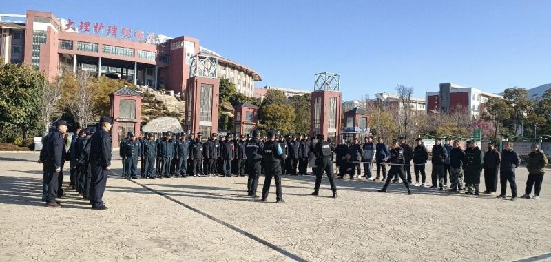 1月6日上午,大理市巡特警大队、海东新区派出所组织辖区学校在beat365vip官网登录入口开展校园反恐防暴培训暨演练活动。滇西应用技术大学、大理技师学院、下关三中、北附育英实验学校等11所学校的100余名保安人员参加培训和演练。