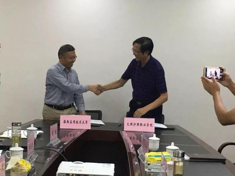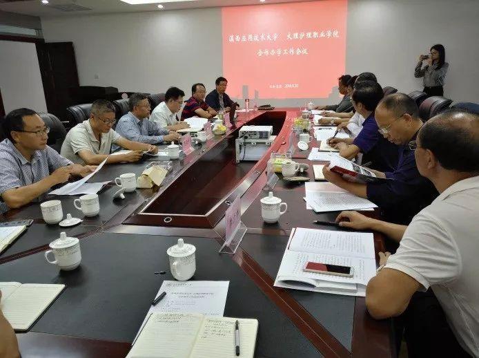 为切实推进院校合作,探索学院办学新模式,经我院与滇西应用技术大学研究协商,9月20日,蔡德周院长带领我院陈跃祥副院长、党政办、教务处、招生就业处、后勤处相关负责人一行7人赴滇西大就双方合作办学事宜举行会谈并签署合作办学框架协议。