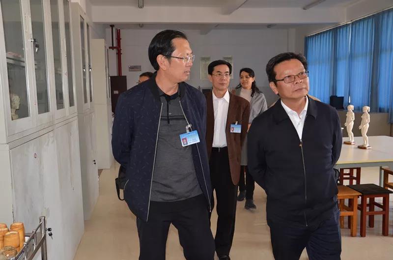 2018年11月6日,云南省卫生健康委科教处处长黄兴黎和科教处干部陈越超到我院参观指导。他们首先视察了医学技术系校企合作创业实践基地和实验室。随后,他们来到康复技术系中医药实训基地,视察中药标本室、实验室。