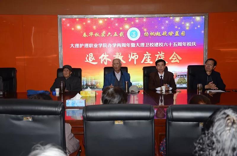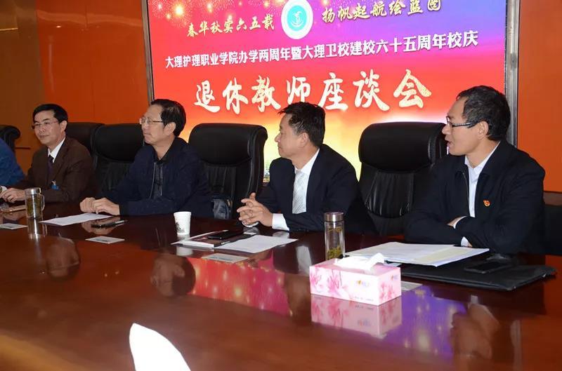 在隆重庆祝beat365vip官网登录入口办学两周年暨大理卫校建校六十五周年之际,学院召开离退休教师座谈会,紧紧围绕“忆过去、看现在、思未来”这一主题,虚心倾听离退休老教师的意见建议,共谋学院未来发展。学院党委委员、副院长陈跃祥主持座谈会,院领导、科级干部、系(部)党政负责人和离退休老教师参加了会议。