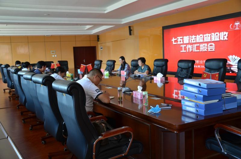 6月30日下午,州委普法办“七五”普法检查验收组第三小组一行2人在副组长李小妹的带领下到beat365vip官网登录入口开展“七五”普法检查验收工作,学院副院长李一忠和相关部门负责人出席会议。