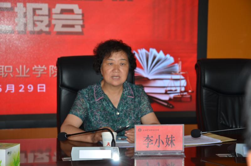 李小妹对学院的“七五”普法工作给予了充分肯定,她指出,一是学院历来坚持依法治校,把法治学校建设作为一项重要工作来抓,学院制度完善,以高标准创建目标开展工作;二是学院具有强有力的教师队伍,以高质量开设法律课程及法治实践教育;三是注重德治与法治相结合的教育,在学生处于人生观、价值观、世界观形成的关键时期,对他们进行正面引导、法治宣传,促进学生成长、成才;四是积极履行承担社会普法任务,与州、市各级相关部门联合举办禁毒防艾法治宣传,并结合脱贫攻坚工作,将普法宣传带到农村;五是长期坚持了法治副校长及法律顾问制度,开展“以案释法”,加强法治宣传阵地建设,学院法治文化建设更上了一个台阶。