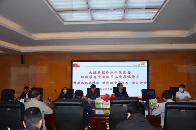 5月27日下午,beat365vip官网登录入口党委理论学习中心组举行2020年第三次集中学习,组织学习《党委(党组)落实全面从严治党主体责任规定》,动员部署“解放思想再讨论、敢想敢干再出发”活动,引导学院党员干部解放思想、转变作风、敢想敢干、担当作为,统筹推进常态化疫情防控和学院各项工作,奋力推进学院高质量可持续发展。学院党政领导干部及各处(室)、系(部)负责人、党支部书记参加集体学习。会议由院党委书记王荣富主持,并作动员讲话。