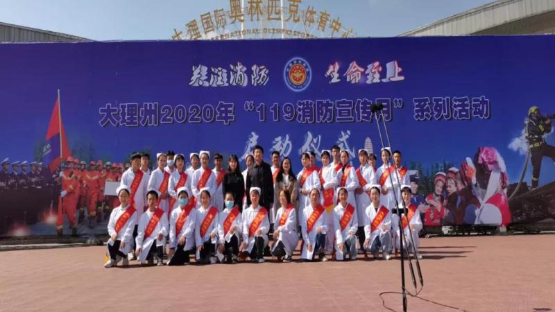 为进一步增强广大人民群众的消防安全意识,营造“人人学习消防、人人参与消防、人人关注消防”的浓厚氛围。2020年11月10日下午2:00,大理州消防救援支队在大理国际奥林匹克体育中心举行“119消防宣传月”系列活动启动仪式。州级相关领导、州消防安全委员会成员单位,学生代表、美团快递代表、消防志愿者代表等共1000余人现场参加活动。我院由李一忠副院长带队,带领保卫科工作人员、保安代表及30名学生代表参加了活动。