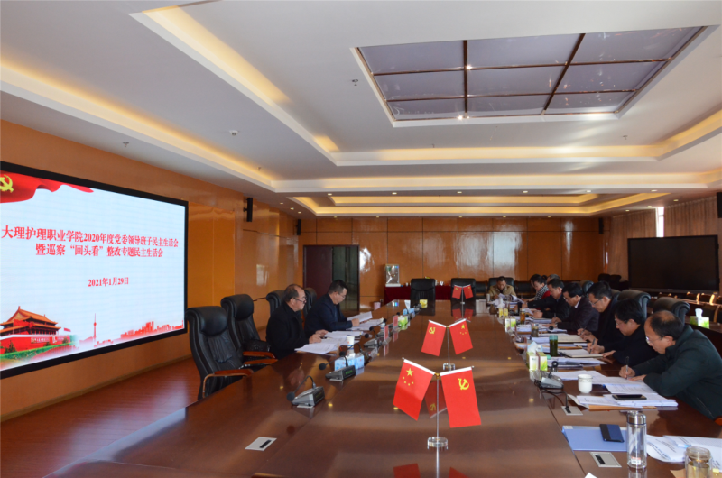 1月29日,beat365vip官网登录入口党委领导班子召开2020年度民主生活会暨巡察“回头看”整改专题民主生活会,以“认真学习贯彻习近平新时代中国特色社会主义思想,加强政治建设,提高政治能力,坚守人民情怀,夺取决胜全面建成小康社会、实现第一个百年奋斗目标的伟大胜利,开启全面建设社会主义现代化国家新征程”为主题,紧密联系思想、学习和工作实际,坚持问题导向,严肃开展批评和自我批评,提出整改措施,明确努力方向。州委第六督导组成员、州委组织部二级主任科员蒋德茶同志到会作指导。会议由学院党委书记王荣富同志主持。
