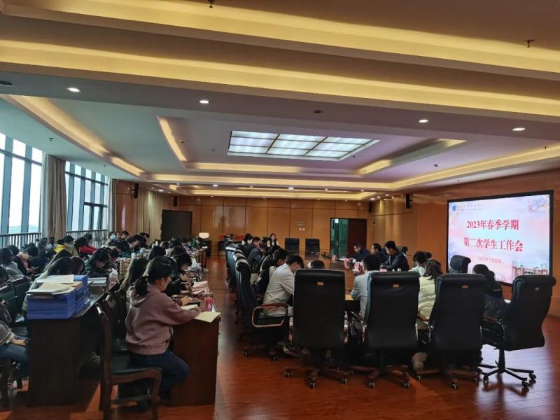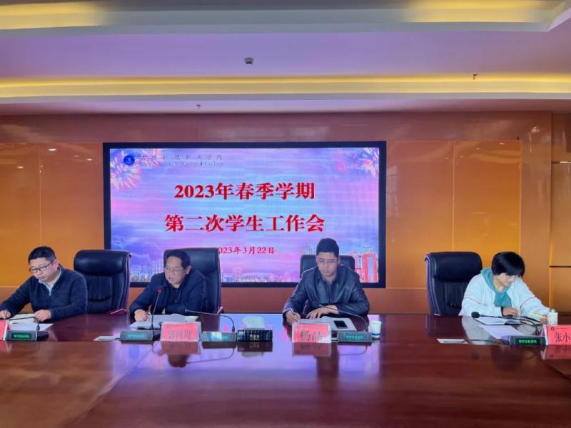 3月22日下午,beat365vip官网登录入口召开2023年春季学期第二次学生工作会议,进一步全面总结本学期开学以来学生工作的经验与成效,科学分析当前学生工作面临的新形势新问题,安排部署2023年春季学期学生工作。校党委委员、副院长郭向周参加会议并作了工作要求,学生科相关人员,各系党支部书记、主任、副主任、学生管理科长,在校班级辅导员、班主任参加会议。校党委委员、学生科负责人杨品主持会议。