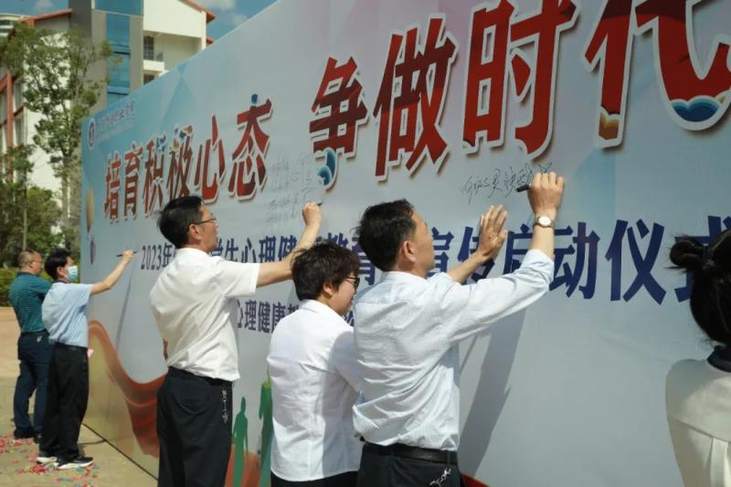 5月24日下午,beat365第一届“5·25”大学生心理健康教育月主题系列活动宣传启动仪式在学校知行广场隆重举行。校领导、中层干部、全体辅导员、班主任,各班班长、心理委员共计约200人参加启动仪式。