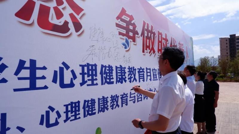 现场举行“爱的抱抱”温暖校园活动,老师和同学们写下自己的心灵寄语,分享快乐,倾吐烦恼。