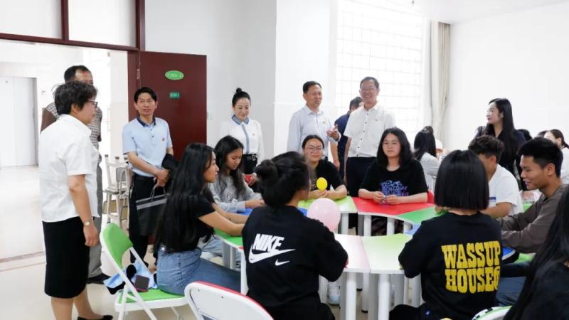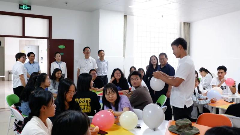校领导在学校心理健康教育与咨询中心参加团体心理辅导活动。