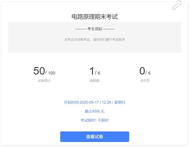 考试结束,点击提交后,考试成绩就会显示出来,请同学牢记自己的考试成绩。