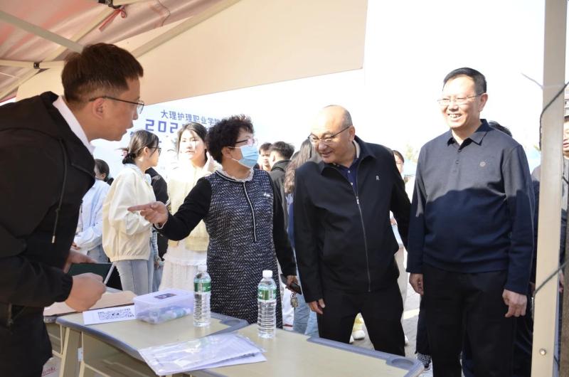 招聘会期间,学校党委书记廖惠群、院长蔡德周等校领导与大理州人力资源和社会保障局、大理州公共就业和人才服务中心、大理市人力资源和社会保障局的领导亲临现场指导,与用人单位代表和毕业生亲切交谈,了解用人单位的招聘需求和毕业生的就业意向,并对用人单位的到来表示热烈欢迎和衷心感谢。