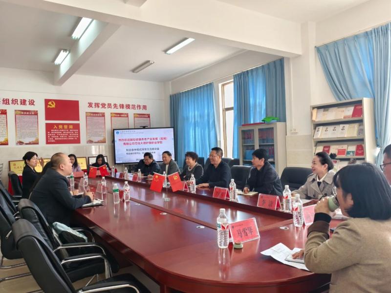 会上,廖书记首先对国投健康养老产业发展(盐城)有限公司的到来表示热烈欢迎,并结合到北京国投健康养老产业发展有限公司的拜访和学习做交流,对即将与国投健康养老产业发展有限公司的战略合作给予高度肯定,同时希望双方共同探索“产教融合、校企协同”的育人新模式,实现学校、企业、学生三方共赢。蔡院长介绍了学校在老年保健与管理、护理、康复、中医等领域的办学特色和人才培养成果。他强调,学院始终坚持以服务社会为导向,致力于培养高素质、复合型人才,为健康养老产业提供坚实的人才支撑。出席会议的国投健康养老产业发展(盐城)有限公司副总经理商林琳、办公室主任张君和战略发展总监苏峰介绍了公司的发展历程、业务布局及未来规划。表示,随着我国老龄化进程的加快,养老健康产业对专业护理人才的需求日益增长,公司希望通过与beat365vip官网登录入口的深度合作,共同探索人才培养新模式,推动校企资源共享、优势互补,实现共赢发展。
