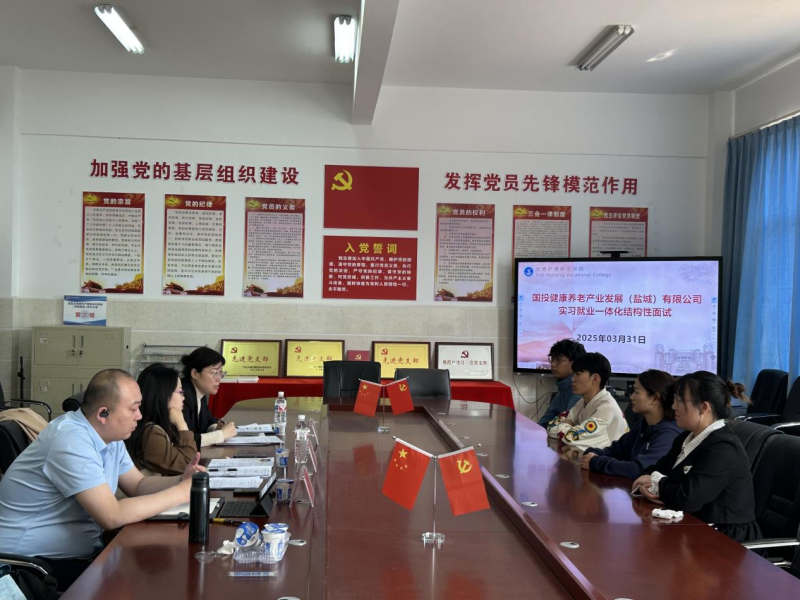 座谈会结束后,国投健康养老产业发展(盐城)有限公司面向学校2023级毕业实习生开展了实习就业一体化招聘活动。公司通过宣讲、面试等环节,并系统向学生详细介绍了公司的企业文化、发展前景和福利待遇,了解学生的专业知识和综合素质。学生们也积极展示自己的专业技能和职业素养,表达了对加入该公司的强烈意愿。
