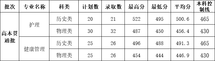 beat365vip官网登录入口与滇西应用技术大学联合培养的“护理”和“健康管理”2个专业高本贯通“3+2”专业投档预录取顺利结束,两个专业招生计划共100人,实际录取105人,录取情况如下: