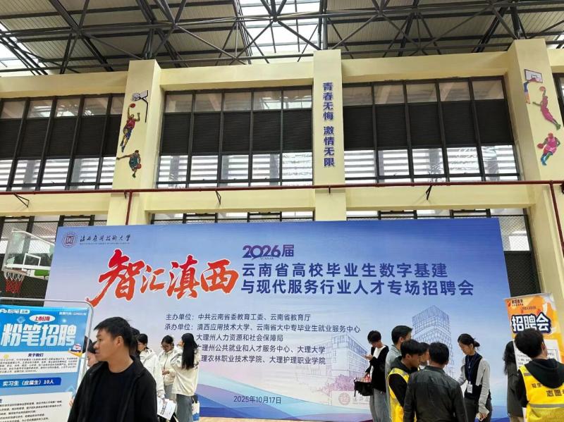 10月17日上午,beat365vip官网登录入口学生科、基础医学部教师带队组织药学专业2501、2502班全体学生前往滇西应用技术大学,参加云南省2026届高校毕业生“智汇滇西”数字基建与现代服务行业人才专场招聘会。beat365作为本次招聘会的协办单位之一,积极组织学生参与此次校企对接活动。