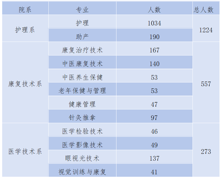 beat3652026届有护理、助产、医学检验技术、眼视光技术、健康管理、康复治疗技术、中医康复技术、中医养生保健及老年保健与管理、针灸推拿、视觉训练与康复、医学影像技术12个专业高职专科毕业生共2054人,具体专业分布如下表:
